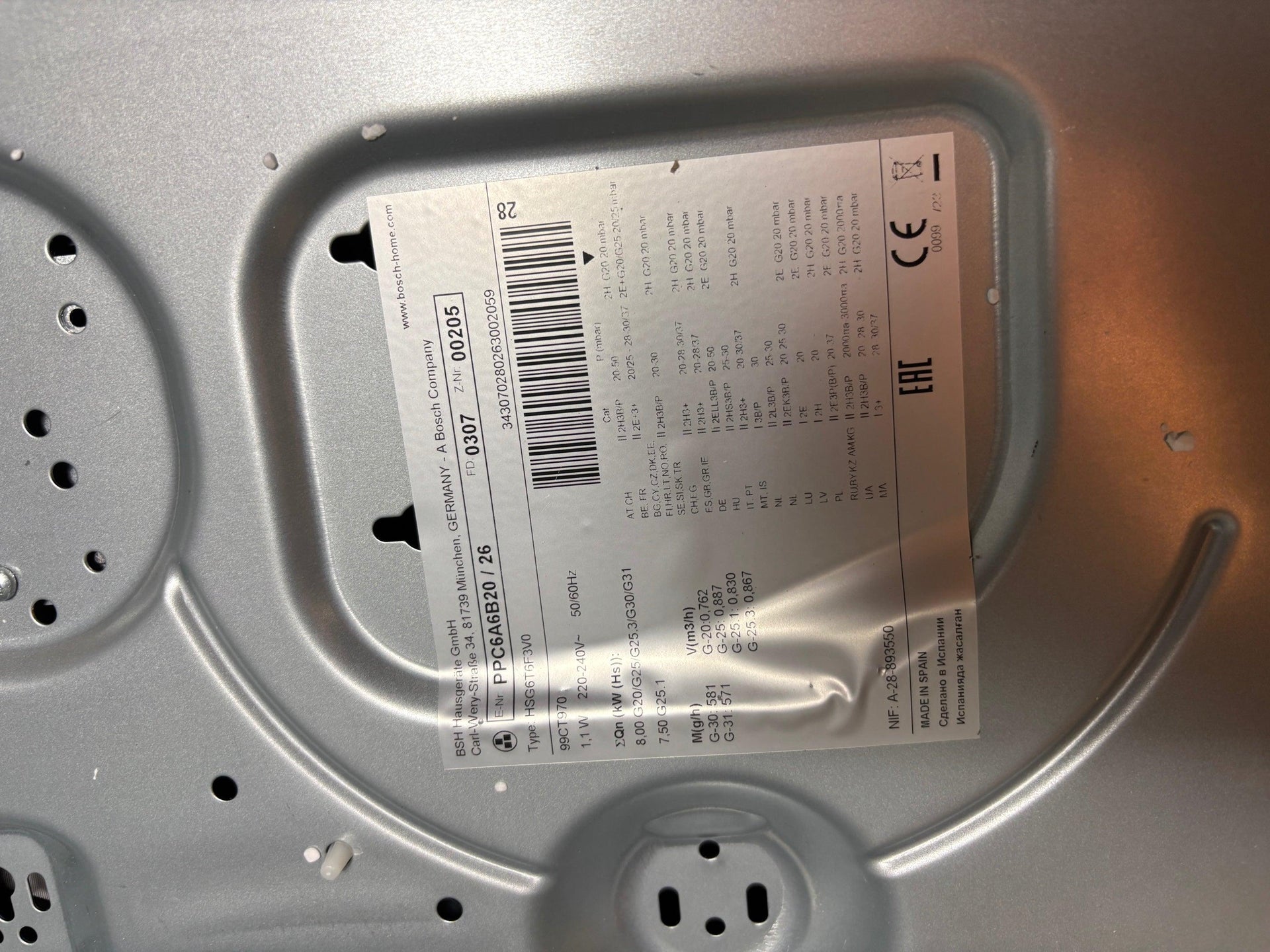 Bosch PPC6A6B20 piano cottura Nero Incasso Gas