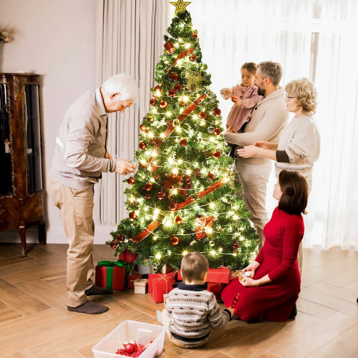 Bradul artificial de Crăciun Costway este alegerea perfectă pentru a aduce spiritul festiv în casa dvs, Fabricat din PVC și plastic de înaltă calitate, acest brad verde are o înălțime de 150 cm, oferindu-vă un aspect plin și autentic, Cu ramurile sale bogate și realiste, acest brad adaugă o notă de frumusețe naturală în decorul dvs, de sărbătoare, Este o opțiune practică și durabilă pentru a vă bucura de atmosfera magică a Crăciunului în fiecare an, fără a fi nevoie să vă îngrijorați de curățenia acelor sau de deteriorarea ramurilor, Detalii: Culoare: verde Material: PVC/plastic Dimensiune: 150 cm Suport inclus: da Numar varfuri: 350